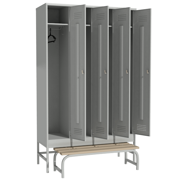 Шкаф раздевальный для хранения одежды с выдвижной скамьей