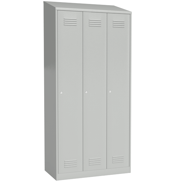 - Шкаф для раздевалки на 3 отделения с наклонной крышей.