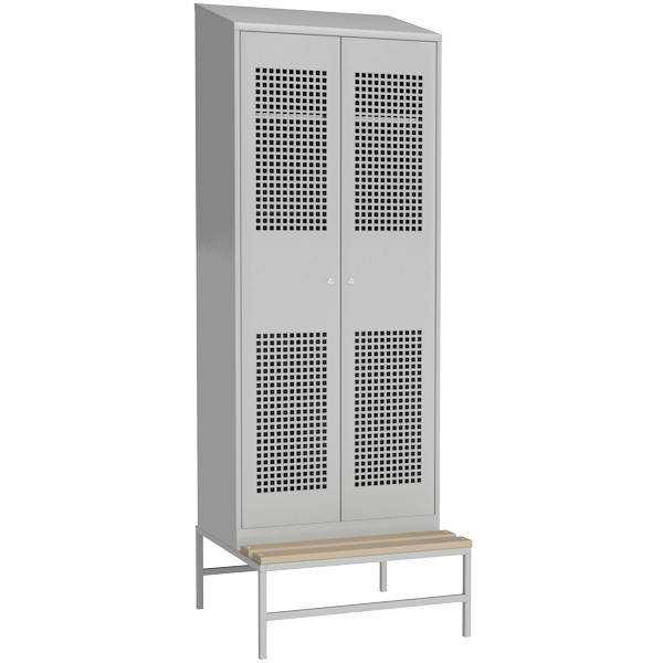 Шкаф с перфорированными дверьми со скошенной крышей на подставке
