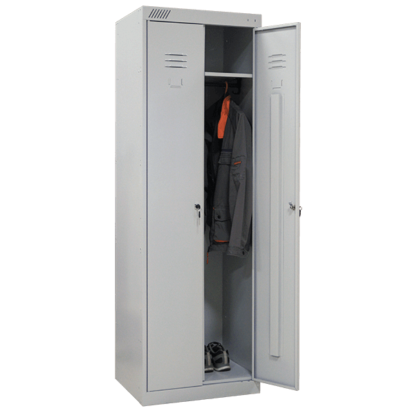 - Шкаф для раздевалок двустворчатый металлический предназначен для хранения верхней, сменной или рабочей одежды в организациях, на производстве, в спортивных и учебных учреждениях.