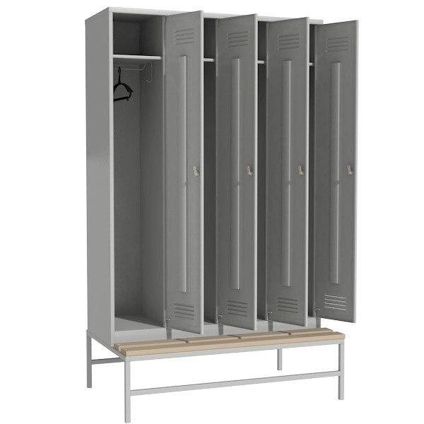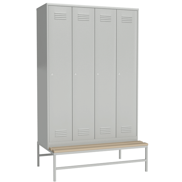 - Состоит из 4 отделений, каждое из которых запирается дверцей с индивидуальным замком.