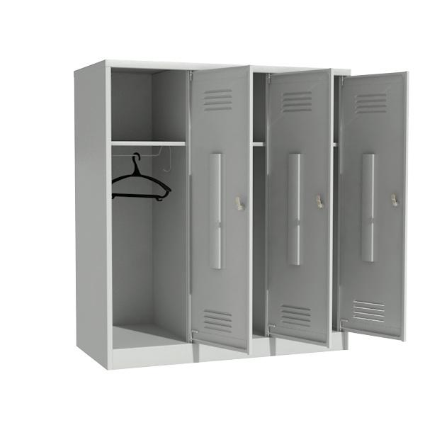 - Состоит из трёх одинаковых секций для хранения одежды, рассчитан на трёх человек.