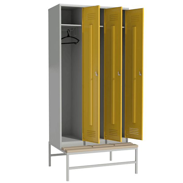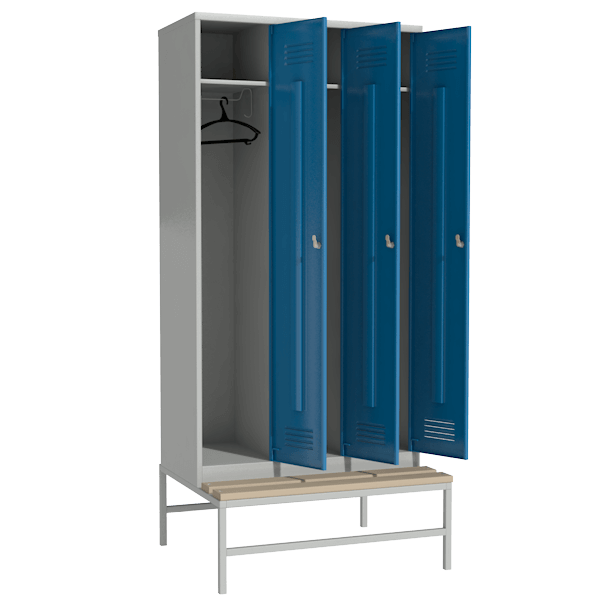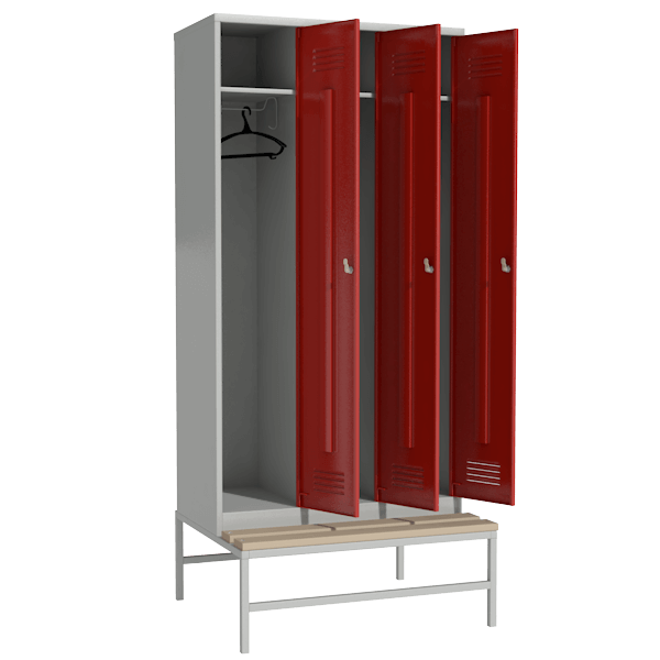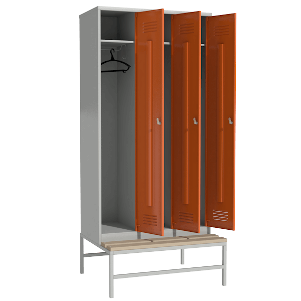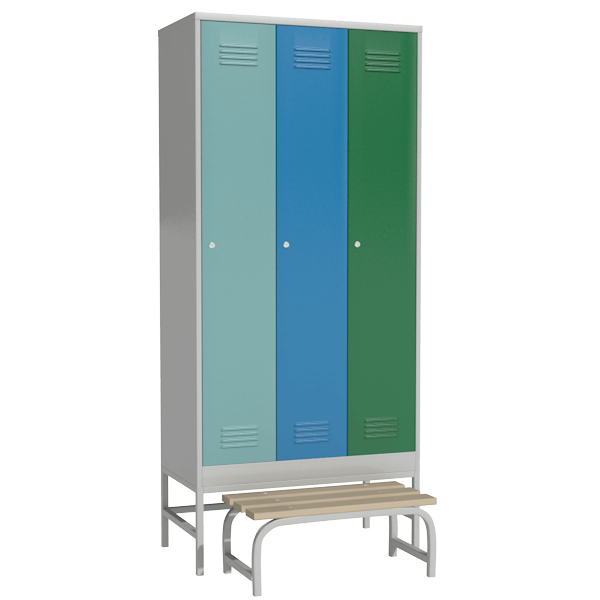 Шкаф цветной для раздевалки с выдвижной скамьей