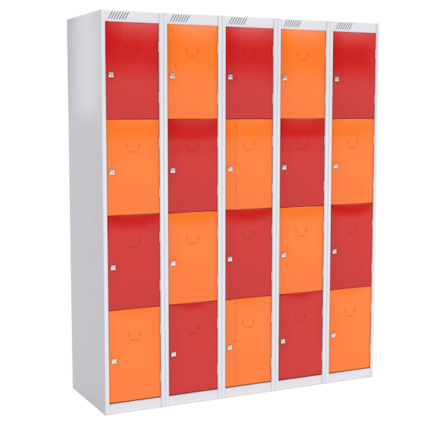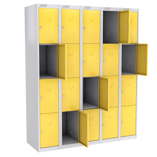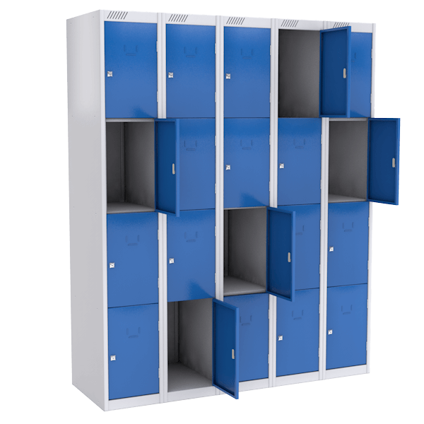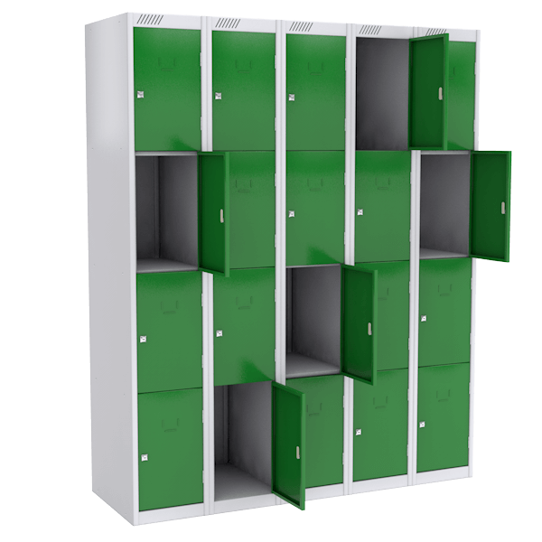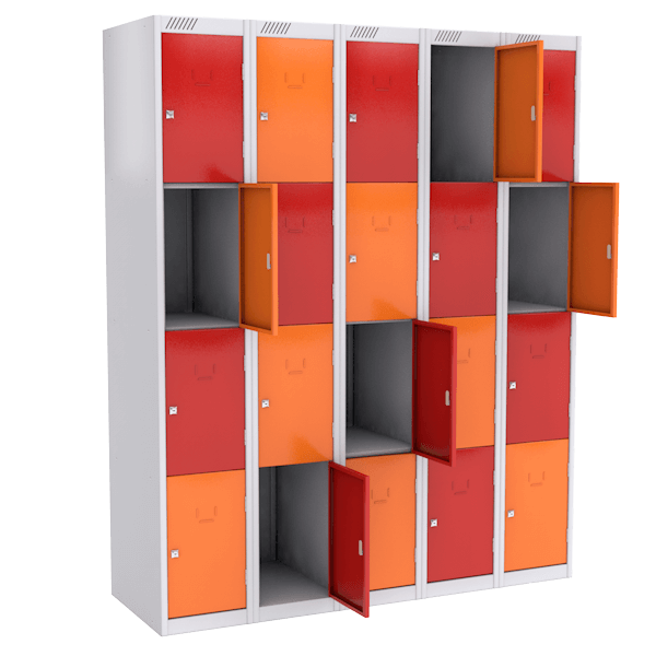 - Двадцать металлических дверец. На дверцах расположены держатели для карточки или номерка.