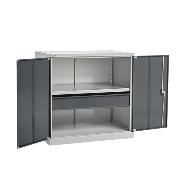 - Корпус шкафа окрашен порошковой краской серого цвета, обладающей стойкостью к коррозии (RAL 7038).