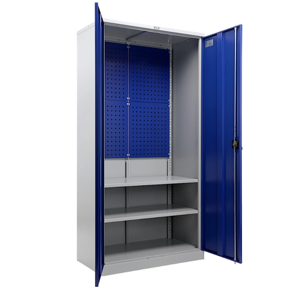 - Полки регулируются по высоте с шагом 50 мм, позволяя адаптировать внутреннее пространство под различные виды инструмента и оснастки. Конструкция предусматривает возможность индивидуальной комплектации и моделирования внутреннего наполнения.