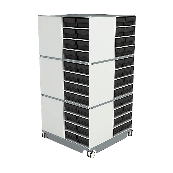 - Кассетница состоит из трёх ярусов, крышки и 4 поворотных колёс со стопорными механизмами.