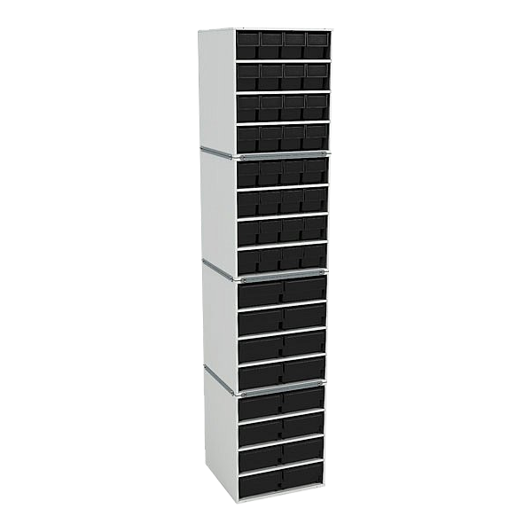 - Стационарная кассетница на 4 яруса ESD применяется для хранения комплектующих, метизов, сыпучих веществ.