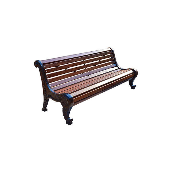- Чугунные опоры скамейки окрашены порошковой краской в чёрный цвет.