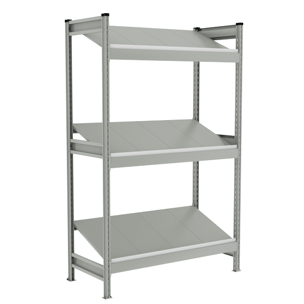 - Стеллаж предназначен для хранения различных мелких грузов в пластиковых ящиках, установленных на наклонные ярусы хранения.