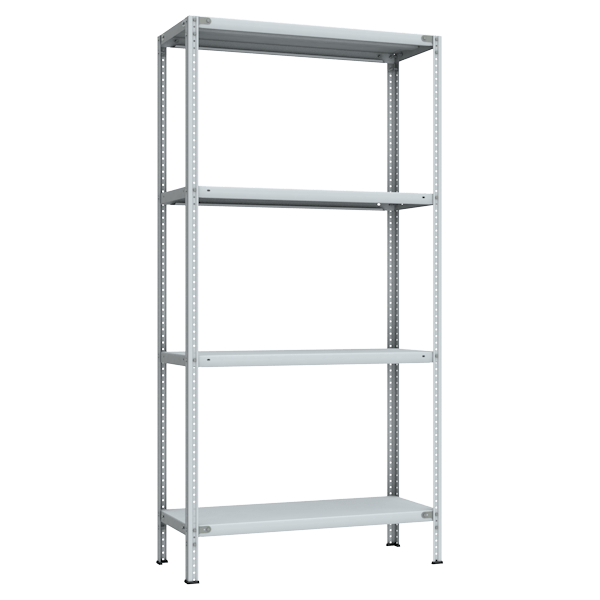- Состоит из перфорированных полок, стоек и пластиковых подпятников, предохраняющих напольное покрытие от царапин.