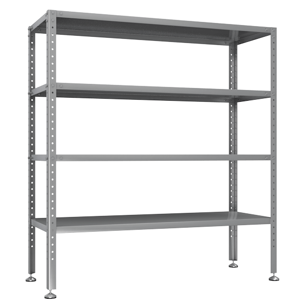 - Состоит из 4 сплошных полок и перфорированных стоек.