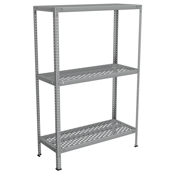 - На стеллаж можно установить 3 или 4 перфорированные полки.