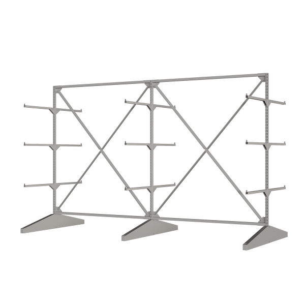 - Двухсторонний стеллаж для размещения длинномерных грузов на складах и предприятиях.
