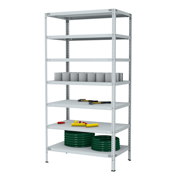 Грузоподъемность стеллажа зависит от количества полок (ярусов), максимальная грузоподъемность составляет 850 кг.