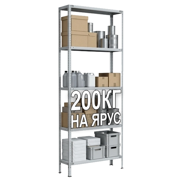- Предназначен для хранения грузов весом до 200 кг на каждой полке.