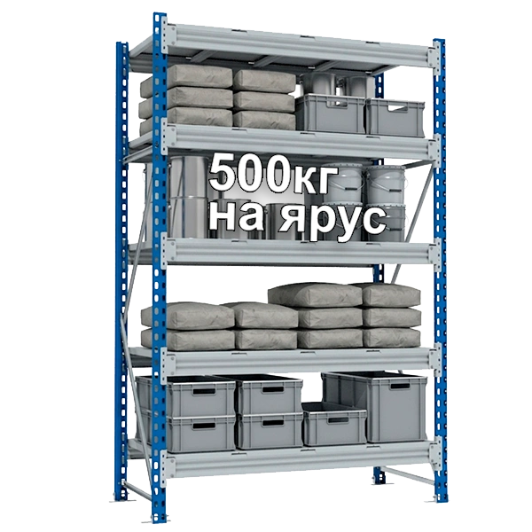 Грузоподъемность стеллажа зависит от количества полок (ярусов), максимальная грузоподъемность составляет 3000 кг.