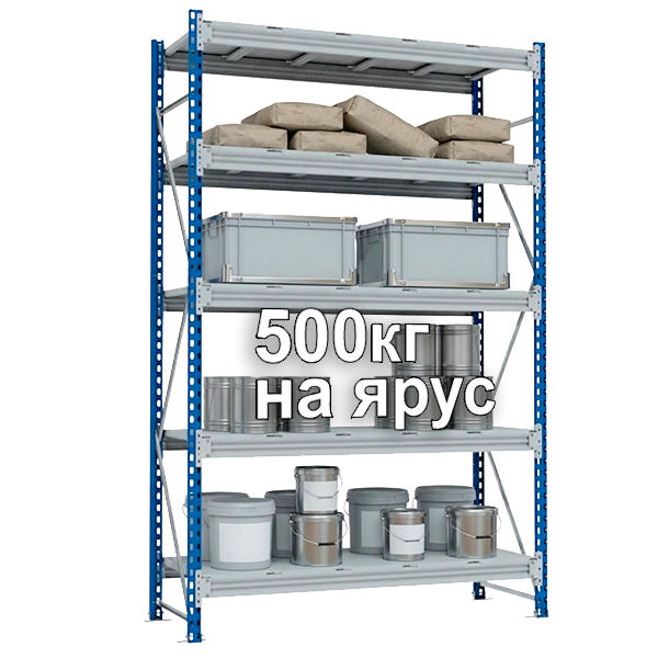 Грузоподъемность стеллажа зависит от количества полок (ярусов), максимальная грузоподъемность составляет 3000 кг.