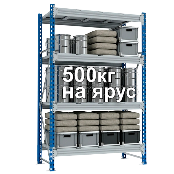 Грузоподъемность стеллажа зависит от количества полок (ярусов), максимальная грузоподъемность составляет 3000 кг.