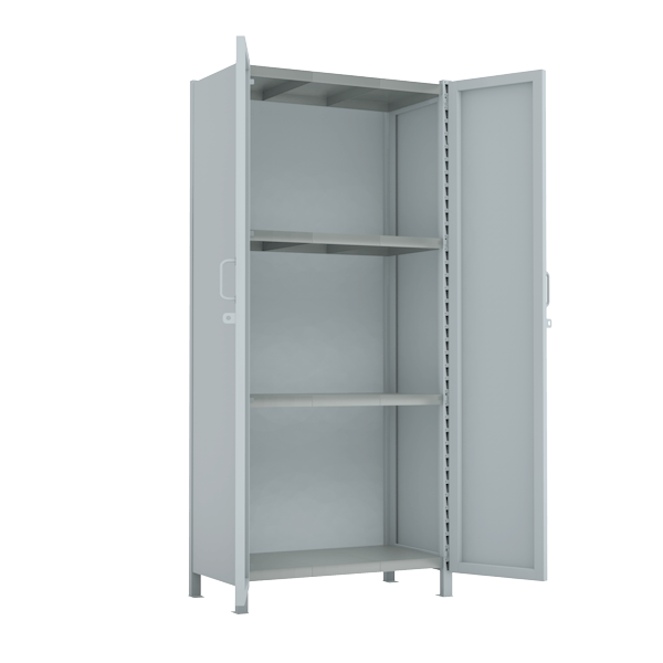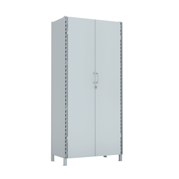 - Закрытые сплошные распашные двери с планками под замок (в комплект не входит).