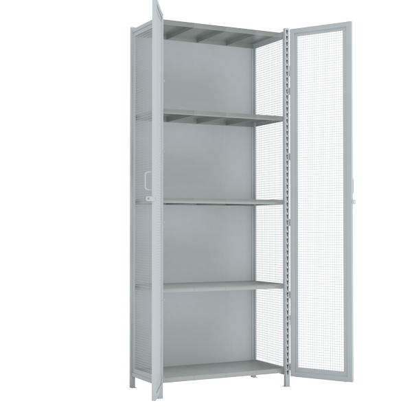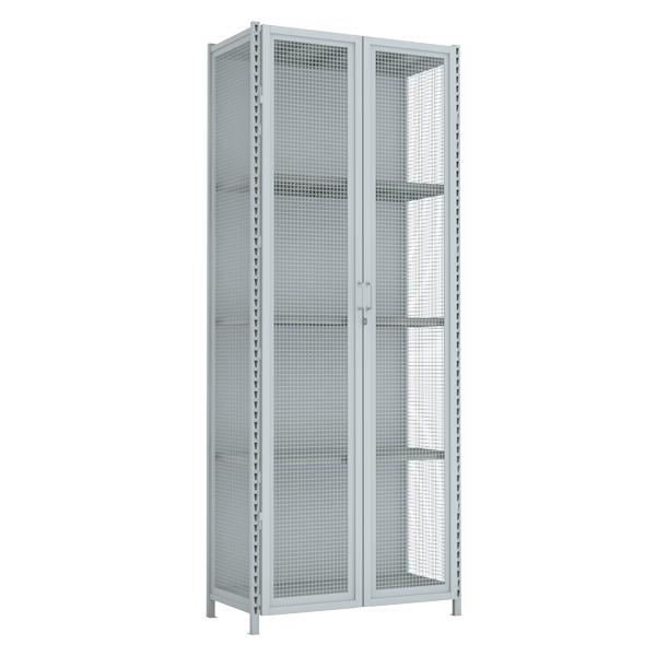 На стеллажи установлены петли под навесной замок. Возможна установка врезного замка (через меню "Аксессуары").