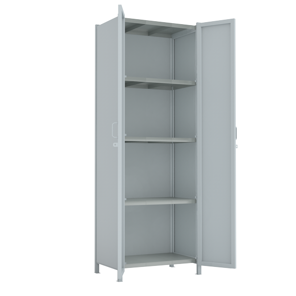 На стеллажи установлены петли под навесной замок. Возможна установка врезного замка (через меню "Аксессуары").