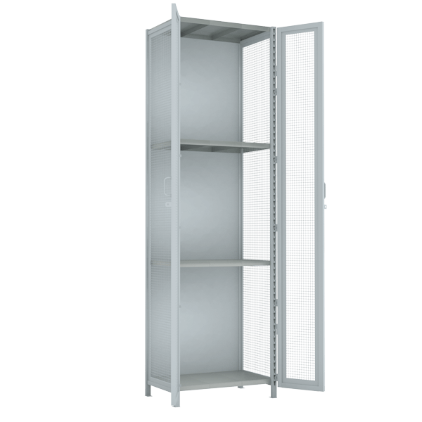 На стеллажи установлены петли под навесной замок. Возможна установка врезного замка (через меню "Аксессуары").