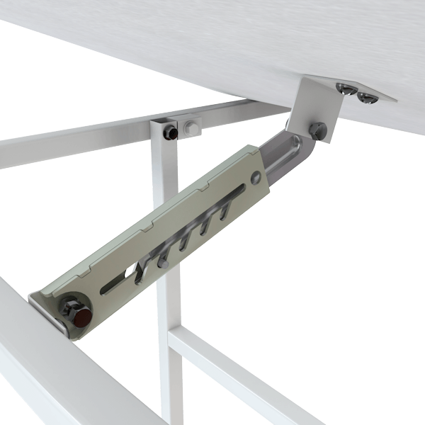 - Угол наклона подголовника массажного стола регулируется при помощи механизма "растомат" и меняется от 0 до 45 градусов относительно горизонтальной оси.