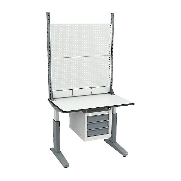 - Комплектуется столешницей из ДСП, двойным экраном, регулируемыми/нерегулируемыми опорами, подвесной тумбой с 3 выдвижными ящиками.