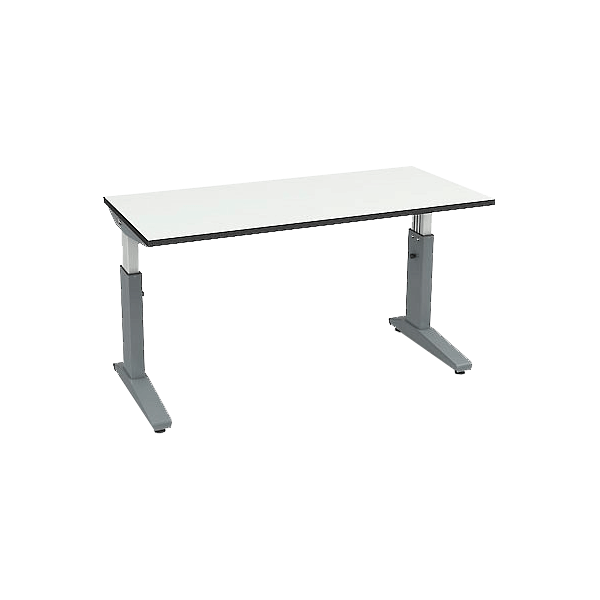 - Стол выполнен в светло-сером цвете, опоры – в тёмно-сером цвете.