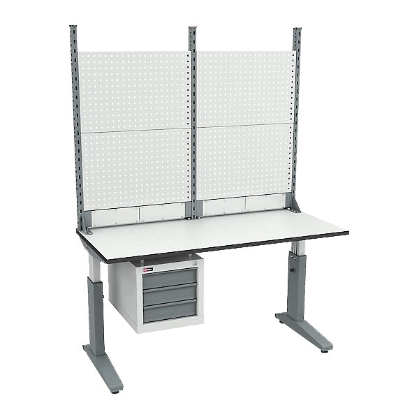 - Стол для электромонтажных работ с двойным экраном и подвесной тумбой с 3 выдвижными ящиками.