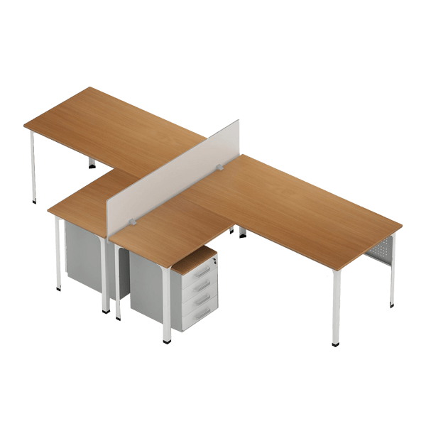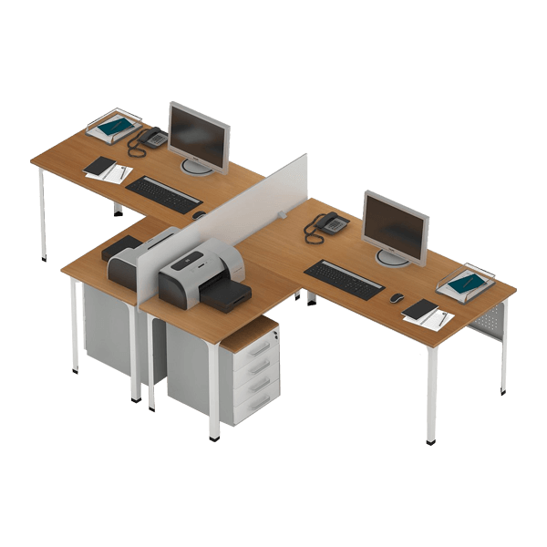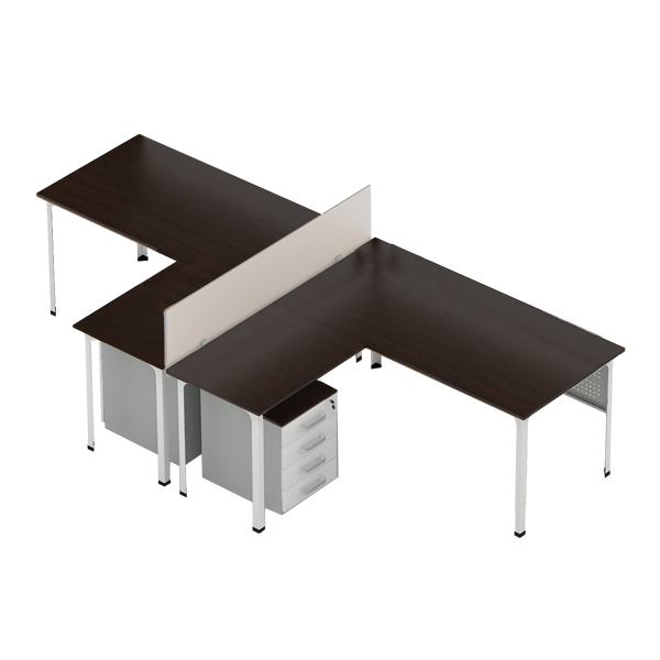 - Рабочее место формируется из двух офисных столов, двух столов-приставок, двух экранов и перегородки между столами.