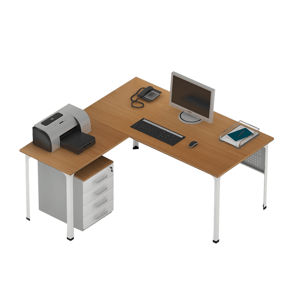 - Дополнительно устанавливаются тумбы с выдвижными ящиками, подставки для системного блока.