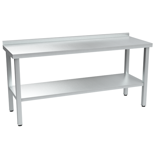 - Оснащён пристенным бортом высотой 50 мм и сплошной полкой для хранения посуды и инвентаря.