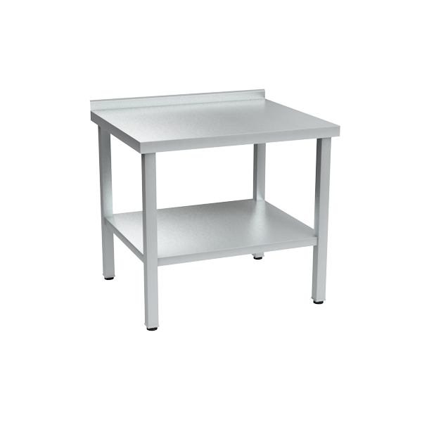 - Оснащён пристенным бортом высотой 50 мм, сплошной полкой и опорами, которые регулируются по высоте и компенсируют неровности пола.