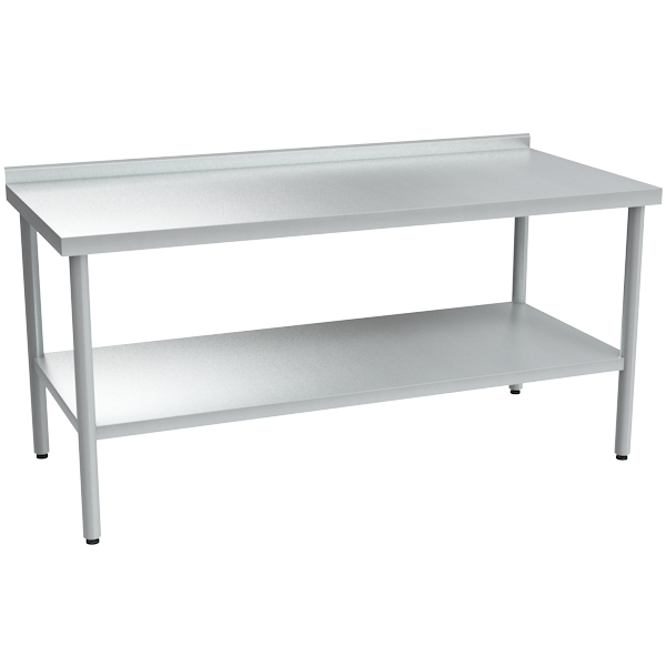 - Комплектуется одним пристенным бортом высотой 50 мм и сплошной полкой из нержавеющей стали AISI 430 толщиной 0.8 мм.
