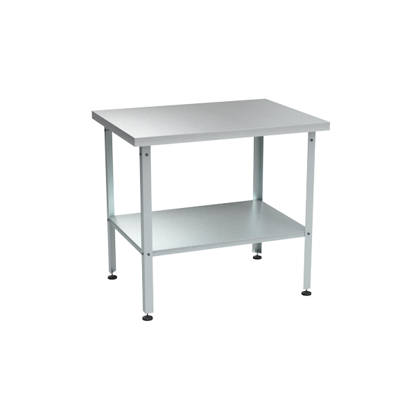 - Стол комплектуется сплошной либо решётчатой полкой из оцинкованной стали толщиной 1,2 мм.