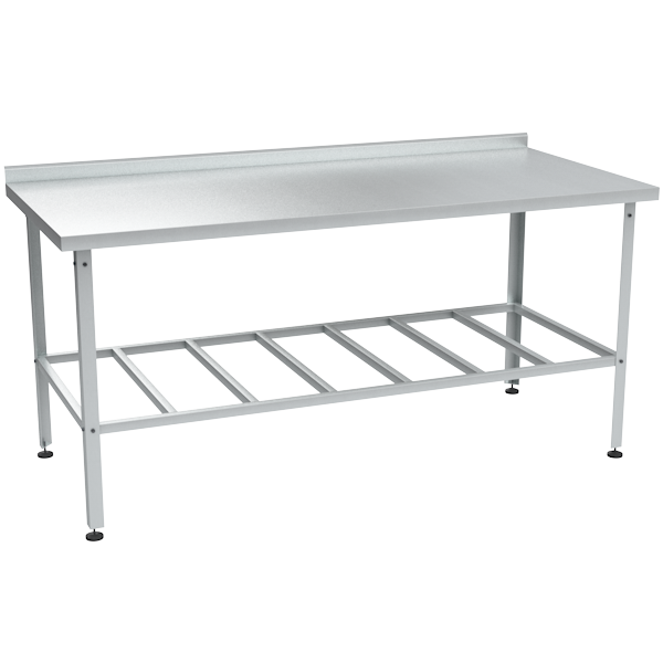 - Сборно-разборный стол с пристенным бортом высотой 50 мм и полкой.