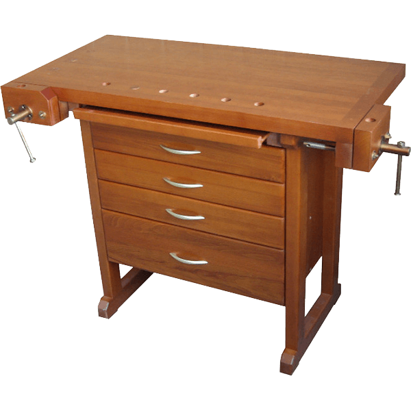 - Столешница верстака с тумбой выполнена из массива бука толщиной 40 мм.