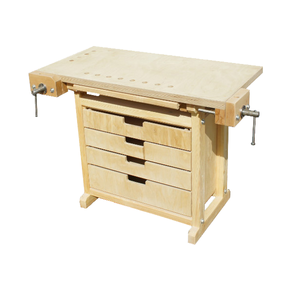 - Верстак укомплектован тумбой для хранения инструмента и заготовок.