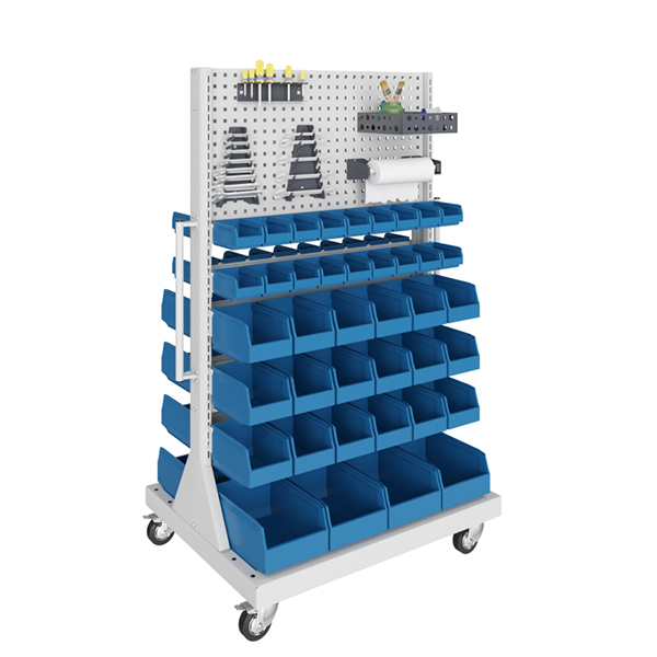 - Состоит из двух перфорированных панелей с обеих сторон конструкции и 80 пластиковых контейнеров.