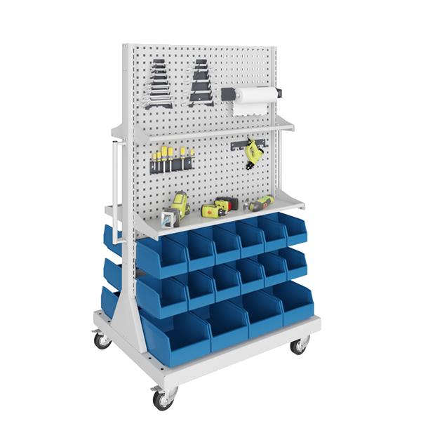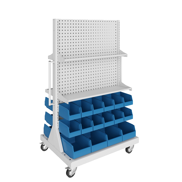 - Сборная конструкция состоит из четырёх перфорированных панелей и 32 пластиковых контейнеров.