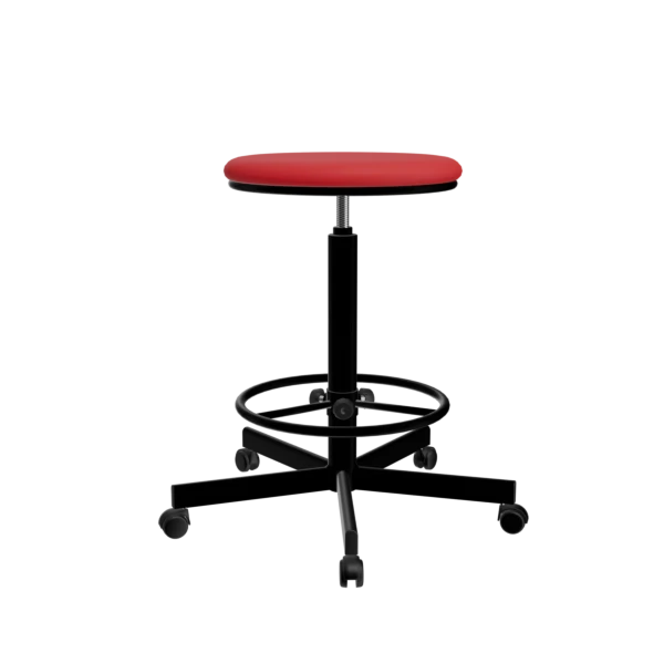 - Красный табурет Т02/К с винтовой опорой и черным металлическим каркасом – универсальный и стильный элемент мебели для салонов красоты, офисов и дома.