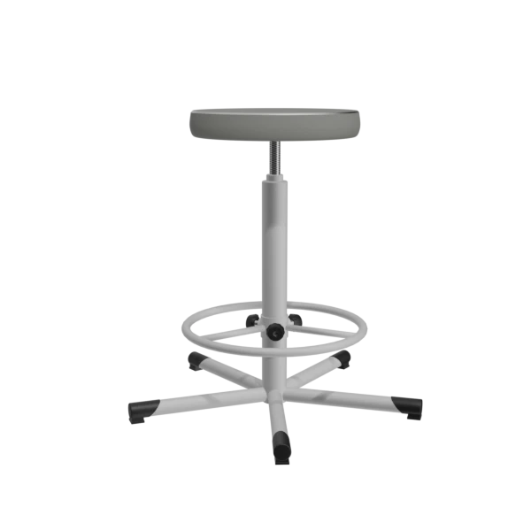 - Табурет на винтовой опоре с серой обивкой Т02-1 и белым каркасом – практичный и универсальный вариант для лабораторий, косметологических салонов и офисов.