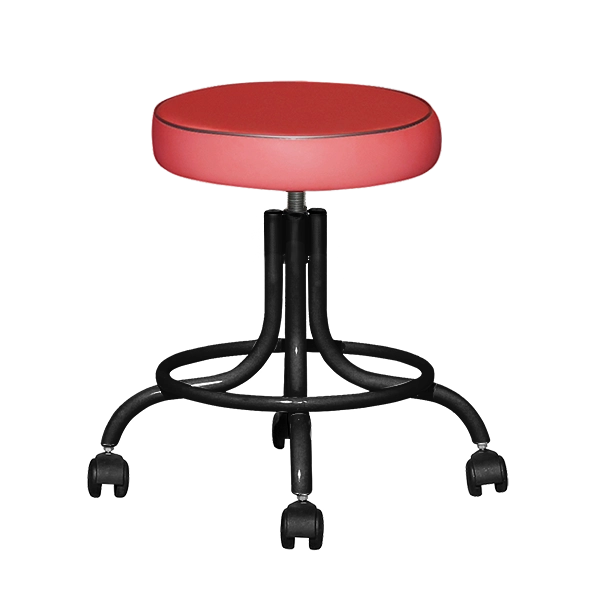 - Винтовой табурет Т01-1 с красной обивкой и черным каркасом – практичное решение для рабочих и жилых помещений.
