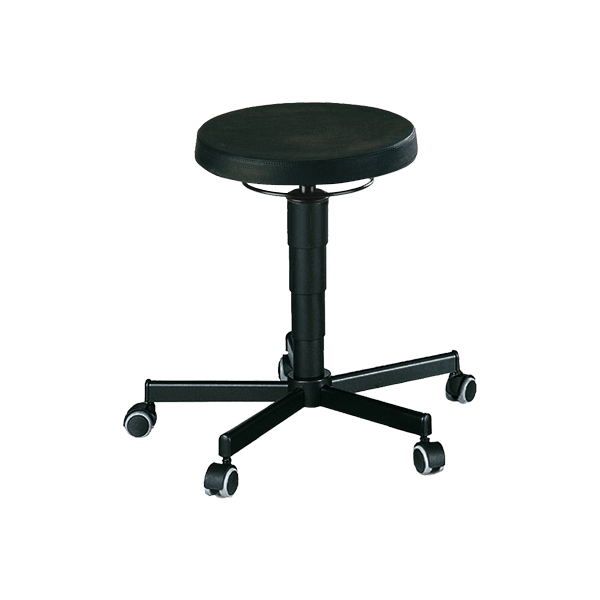 - Черное полиуретановое сиденье отличается износоустойчивостью и удобством уборки.