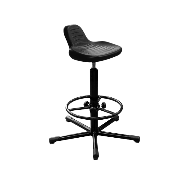- Табурет лабораторный полиуретан Т09, форма основания прямоугольное со спинкой, каркас черный — надежное и удобное сиденье для производственных помещений.