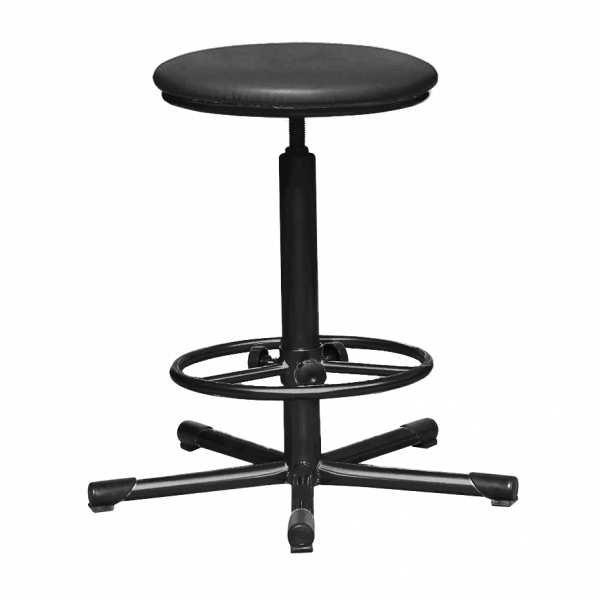 - Табурет на винтовой опоре Т02, обивка черная, каркас черный – практичное и универсальное решение для производственных и рабочих помещений, где ценятся надежность и удобство.