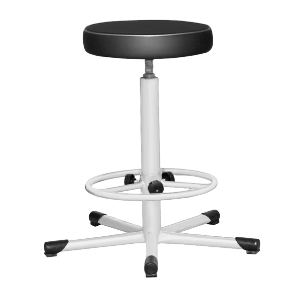 - Табурет на винтовой опоре Т02-1, обивка черная, каркас белый – надежное и эргономичное решение для работы.