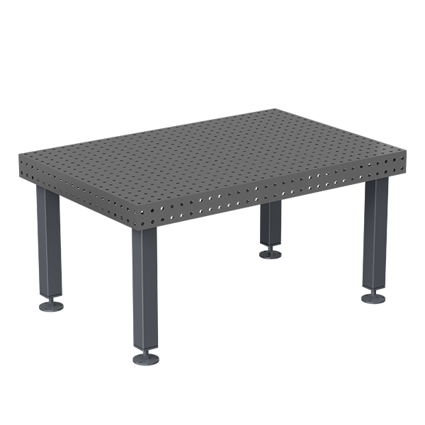 - Конструкция состоит из силового каркаса, столешницы с монтажными отверстиями и регулируемыми по высоте опорами.